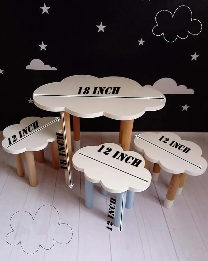 | Product Name | Cloud Shape Kids Wooden Table and Chair Set Solid Wood Multi Colour Furniture for Study Play and Learning Use Durable Kids Table Chair Set for Home Classroom Activity Setup |