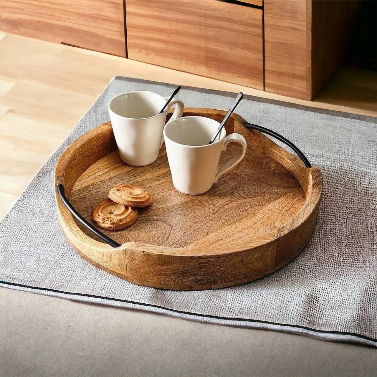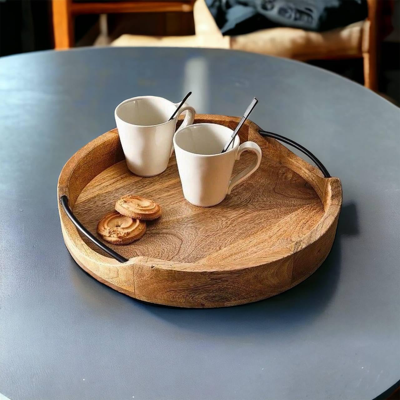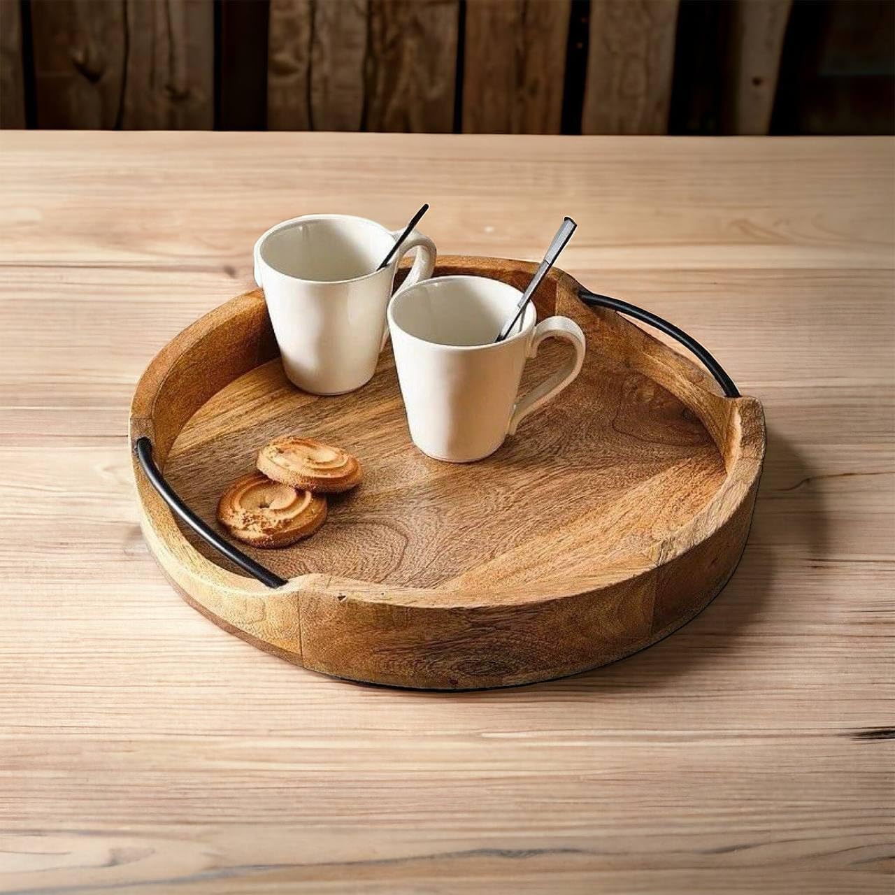 Bring timeless elegance and practicality to your home with this beautifully crafted Round Wooden Serving Tray. Made from high-quality natural wood and complemented by durable black iron handles, this tray offers a perfect blend of rustic charm and modern utility. Whether you’re serving tea, coffee, snacks, or using it as a stylish decorative centerpiece, this tray is built to impress and endure. Its sturdy design makes it ideal for everyday use as well as for special occasions. The smooth wooden finish ensures easy cleaning and maintenance, while the ergonomic iron handles provide a strong grip for comfortable carrying. Use it in the living room, bedroom, kitchen, or even for outdoor patio gatherings. Enhance your home decor with this versatile round serving tray — perfect for gifting, hosting, or simply upgrading your personal space with functional beauty.