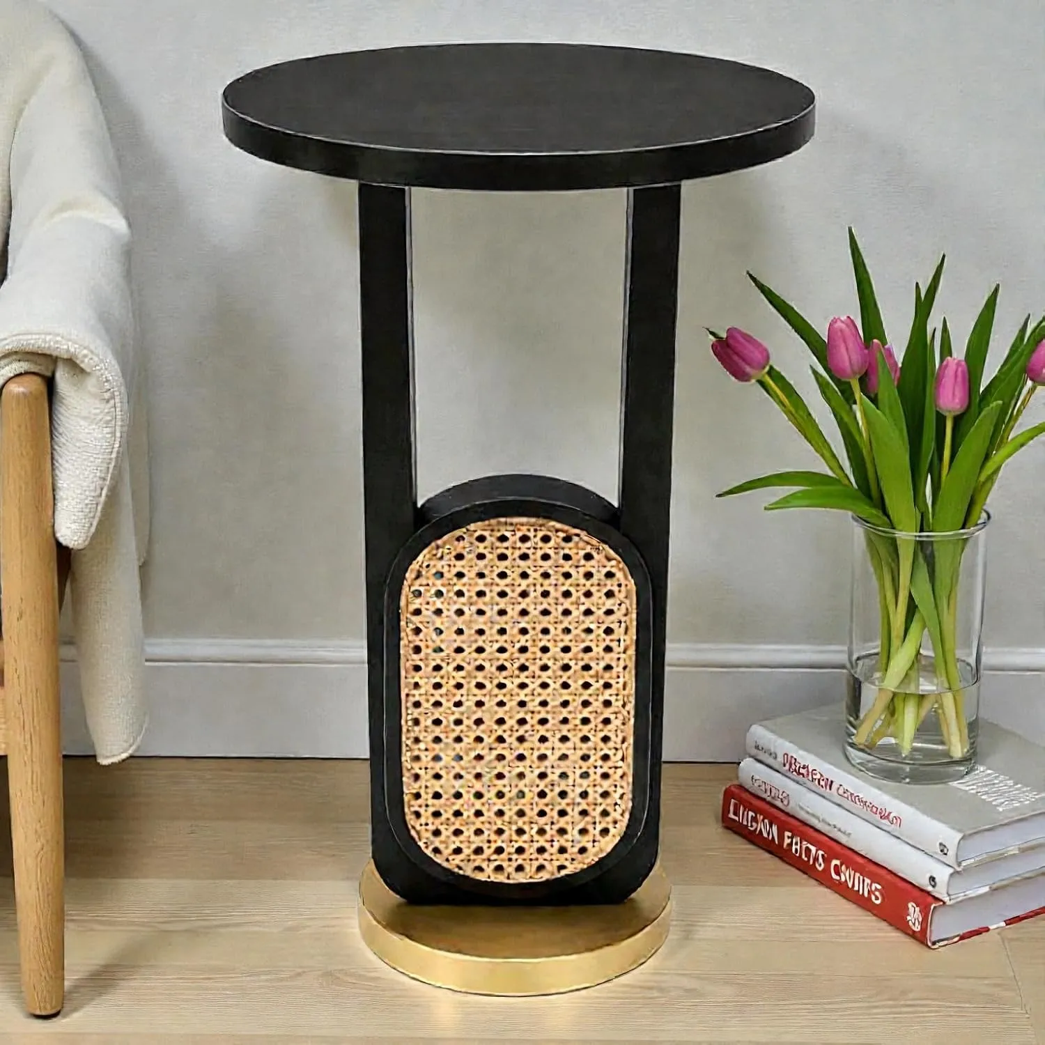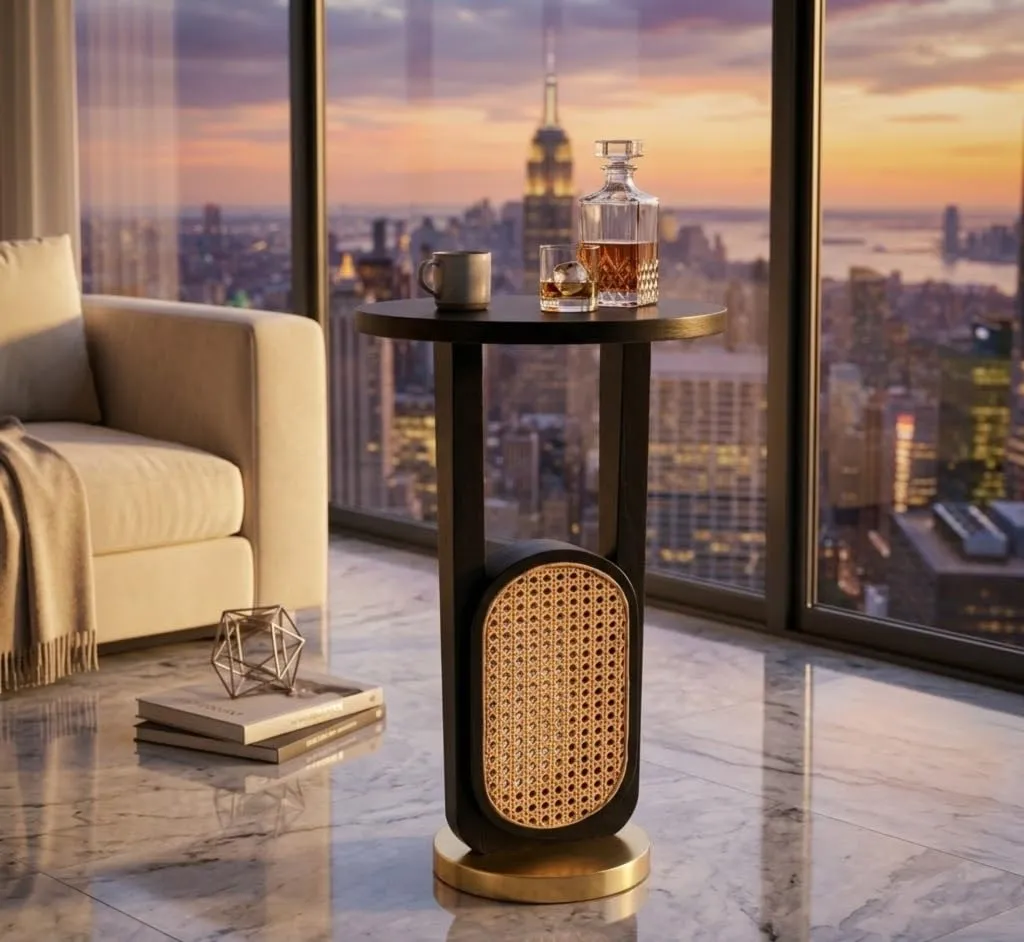 This foldable coffee table U shape cane table is designed to bring both style and functionality into your home. Made from durable wooden material it provides a strong and stable surface for everyday use. The unique U shape design allows easy placement near sofas making it convenient for serving coffee tea snacks or keeping daily essentials within reach. The cane detailing adds a natural and elegant touch enhancing the overall look of your living space. Its foldable design makes it perfect for compact homes allowing you to easily store it when not in use and save valuable space. The combination of black and golden finish creates a modern and stylish appearance that blends well with different interior styles. Lightweight and easy to move this table can be used in the living room bedroom or balcony based on your needs. The sturdy structure ensures stability keeping your items secure during use. The smooth surface allows easy cleaning helping you maintain a neat and organized environment. Designed for convenience this table requires minimal setup so you can start using it immediately without hassle. This foldable coffee table is a practical and stylish solution for everyday living offering durability versatility and space saving benefits in one design