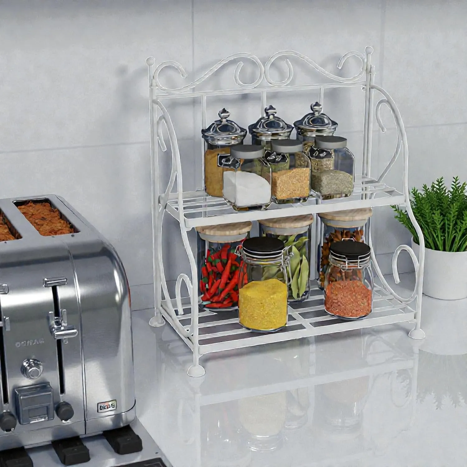This kitchen rack foldable storage solution is designed to help you keep your space organized and clutter free. Built with strong iron material it provides reliable support for storing a variety of kitchen items including utensils containers and small appliances. The foldable design makes it highly practical for homes with limited space allowing you to store it easily when not in use. Its compact structure fits well in kitchens pantries or utility areas making it a versatile addition to your home. The clean white finish gives it a simple and modern look that blends easily with different interiors. This rack is designed for everyday convenience helping you arrange your essentials in an efficient and accessible way. The sturdy frame ensures stability so you can store items without worry. It requires minimal setup making it easy to start using right away without tools or complicated assembly. The smooth surface allows easy cleaning helping maintain hygiene in your kitchen. Whether you need extra storage for groceries or a convenient place for daily use items this foldable kitchen rack meets your needs with practical design and durable construction making your daily routine more organized and comfortable
