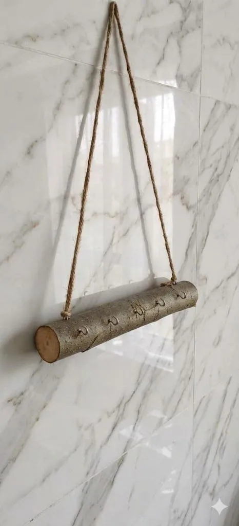 This natural wooden key holder wall hanging with jute rope is designed to bring both organization and rustic charm to your home. Made from durable wooden material it offers strong and reliable support for holding keys and small accessories. The wall hanging design helps you save space by keeping your keys in one dedicated place without occupying table or shelf space. The addition of jute rope enhances its rustic appeal giving your wall a natural and decorative look that blends well with different interior styles. This key holder is perfect for entryway hallway living room or even kitchen helping you keep your essentials organized and easy to access. Its lightweight structure makes it easy to hang and reposition as needed. The sturdy construction ensures durability while the smooth wooden surface allows simple cleaning and maintenance. Designed for convenience it requires minimal setup so you can start using it right away. This wall hanging key organizer helps reduce clutter by keeping your keys neatly arranged and easy to find saving you time in your daily routine. Whether you want to add a functional decor piece or improve your home organization this wooden key holder offers a practical and stylish solution that enhances your space while keeping it neat and well arranged