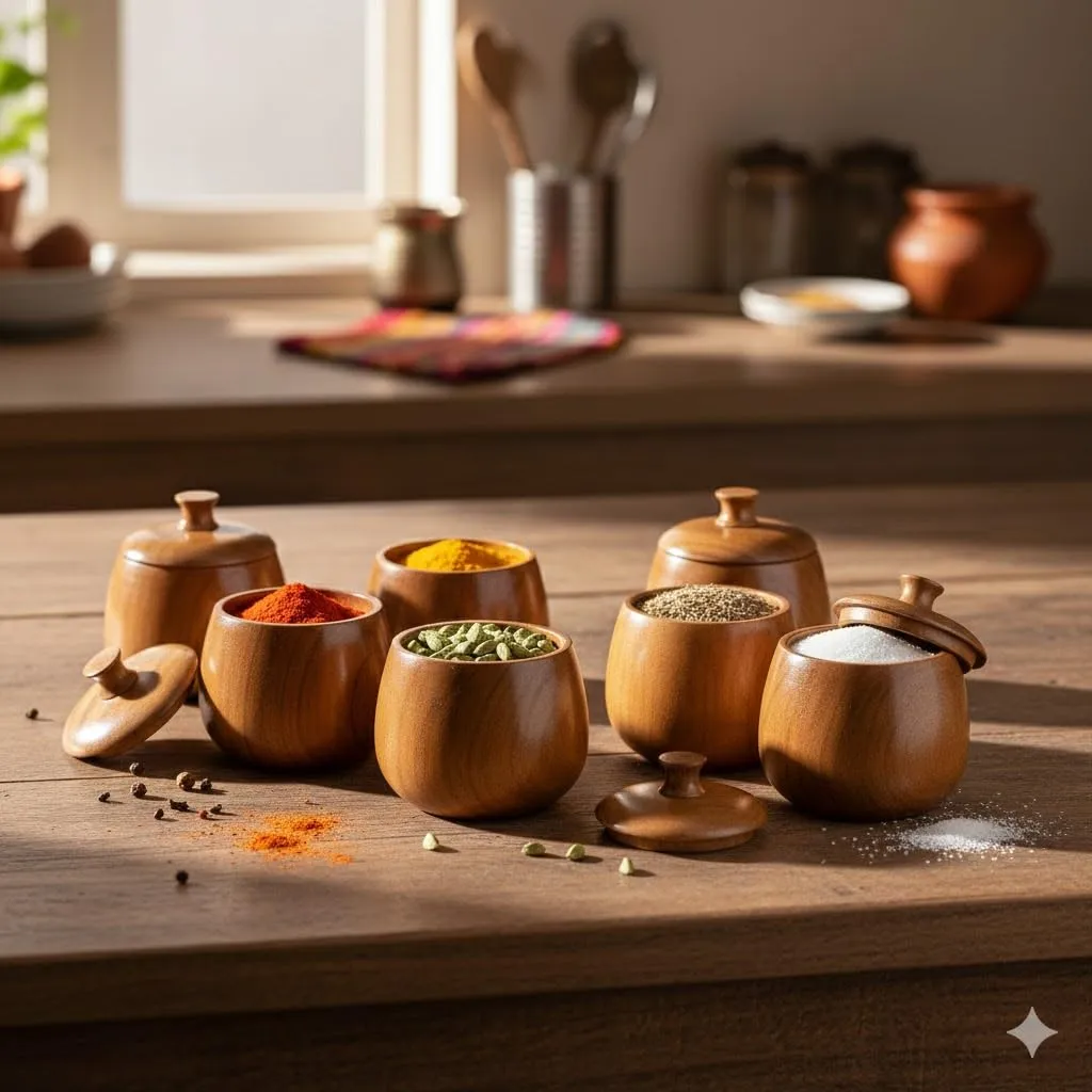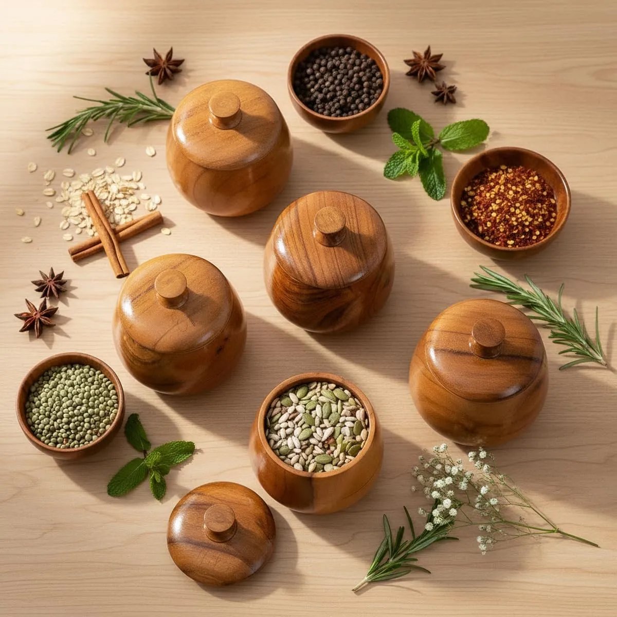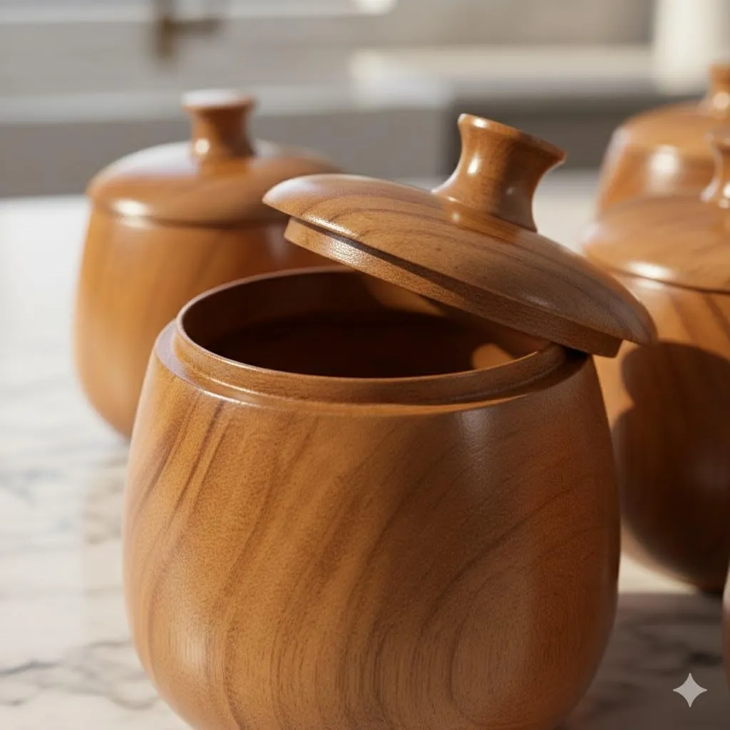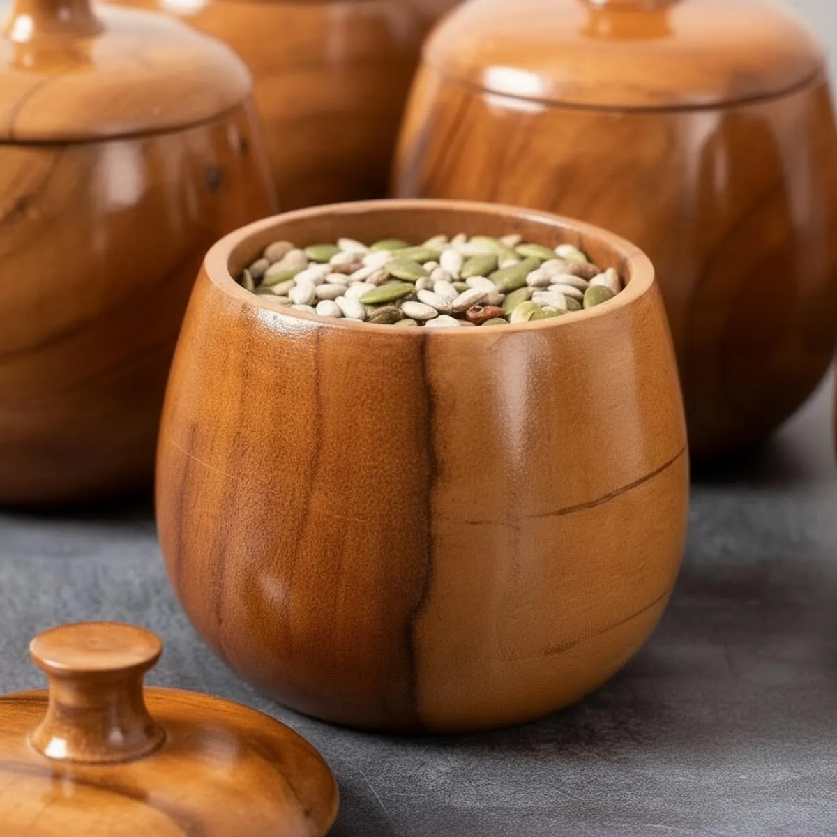 | Product Name | Wooden natural mango wood storage jar with lid for kitchen use durable wood material container for storing spices snacks and dry items compact design for daily use secure lid and neat storage |