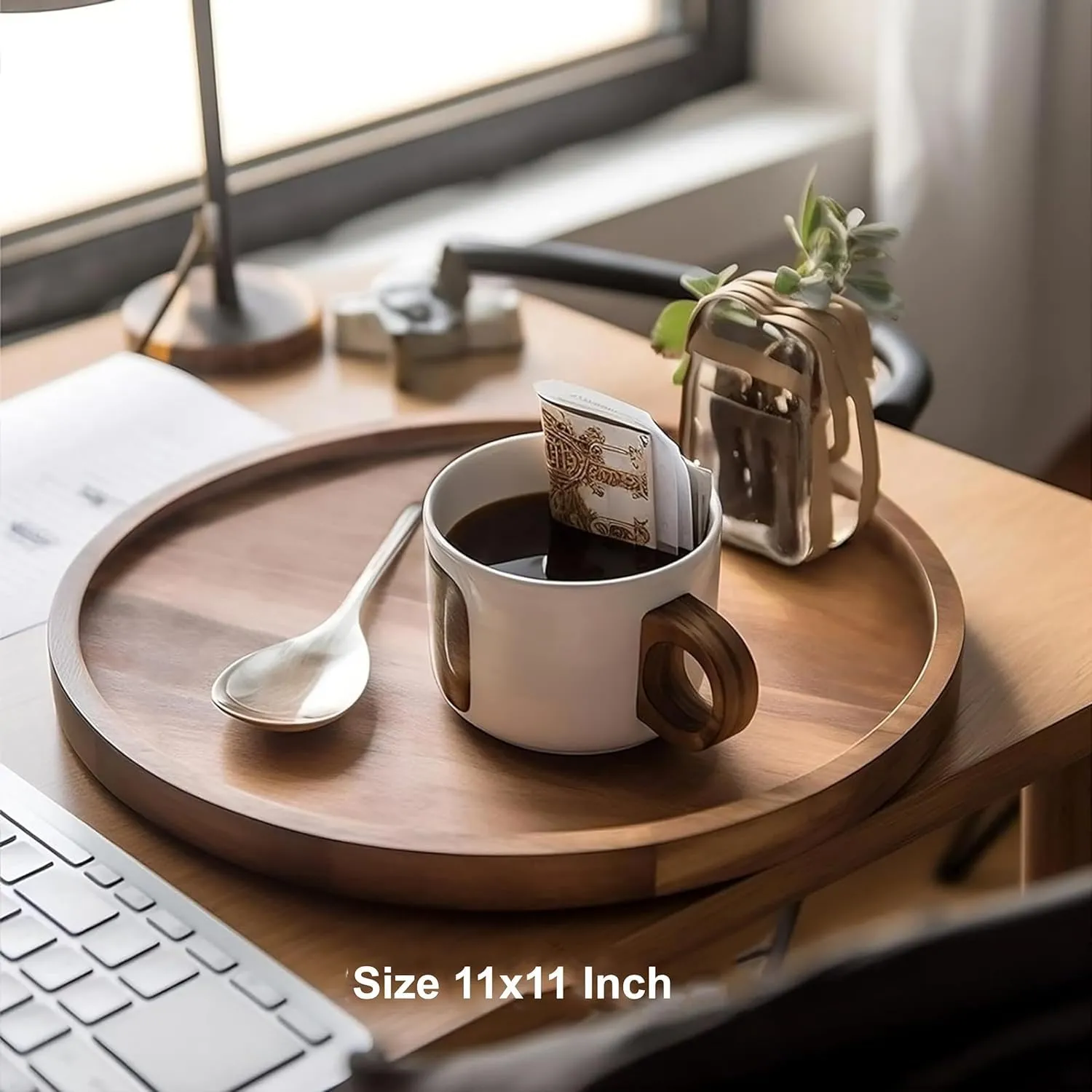 This round wooden plate is versatile and can be used for various purposes such as serving breakfast lunch dinner or snacks. It fits well in both modern and traditional kitchen setups adding warmth and simplicity to your dining decor. The compact size allows easy storage without taking up much space in your kitchen cabinets.
